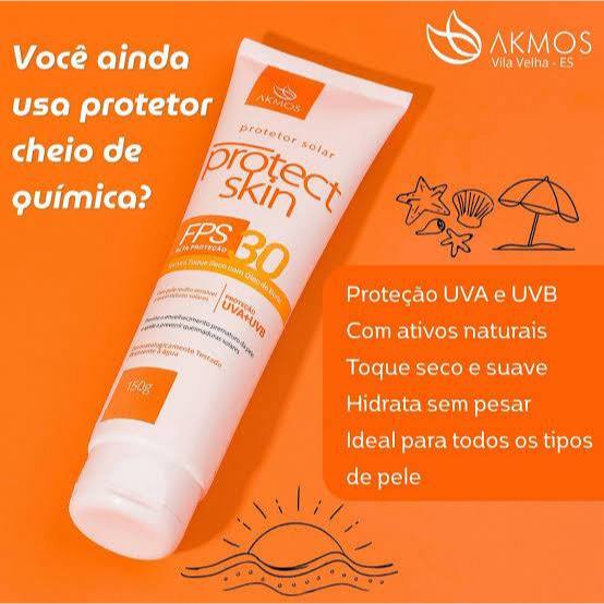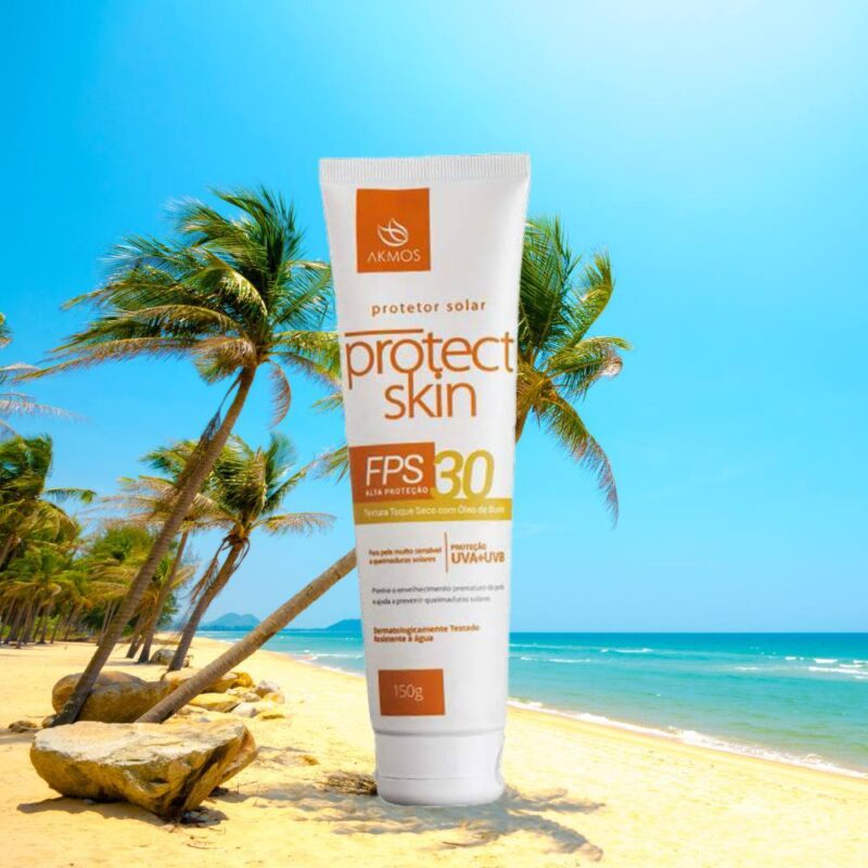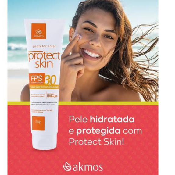 O Protect Skin FPS30 é o protetor solar ideal para quem busca proteção eficaz, conforto e praticidade no dia a dia. Sua fórmula dermatologicamente testada protege contra os raios UVA e UVB, prevenindo queimaduras solares e sinais de envelhecimento precoce.